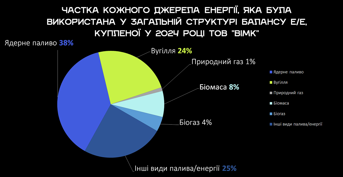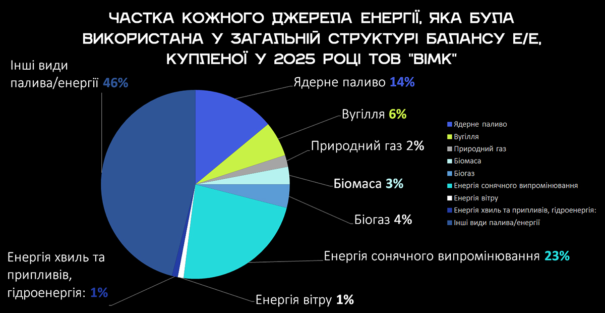 - Частки кожного джерела енергії у загальній структурі балансу електричної енергії